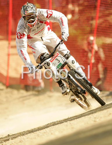 Maribor ,Slovenia - 11.05.2008 : Second placed Steve Peat of Great Britain during men final run of first Downhill MTB World Cup 2008. First men race of UCI Nissan Mountain Bike World Cup 2008 was held in Maribor, Slovenia, on 11th of May 2008. Photo by: Primoz Jeroncic
