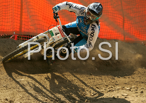 : Emmeline Ragot of France during women semi final run of first Downhill MTB World Cup 2008. First women race of UCI Nissan Mountain Bike World Cup 2008 was held in Maribor, Slovenia, on 11th of May 2008.