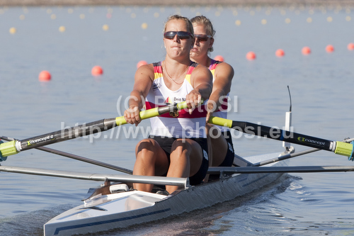 : German team, HARTMANN Kerstin SINNIG Marlene, competing in the womens double atthe 2010 European Rowing Championships held at the aquatic centre, Montemor-o-Velho, Portugal.