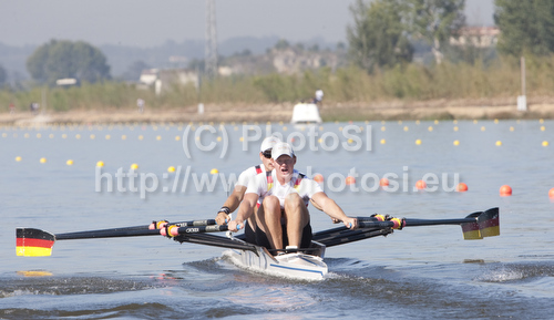 Montemor-o-Velho ,Portugal - 11.09.2010 : German team, KNITTEL Eric KRUEGER Stephan, competing in the mens Double Sculls at the 2010 European Rowing Championships held at the aquatic centre, Montemor-o-Velho, Portugal. Photo by: Mitchell Gunn / PhotoSI