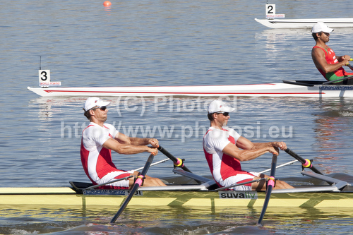 Montemor-o-Velho ,Portugal - 11.09.2010 : Swiss team, VONARBURG Andre STOFER Florian, competing in the mens Double Sculls at the 2010 European Rowing Championships held at the aquatic centre, Montemor-o-Velho, Portugal. Photo by: Mitchell Gunn / PhotoSI