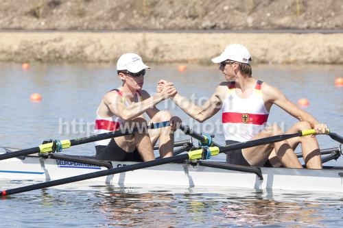 : German team, LICHTSCHLAG Linus HARTIG Lars, competing in the Lightweight Mens Double Sculls at the 2010 European Rowing Championships held at the aquatic centre, Montemor-o-Velho, Portugal.