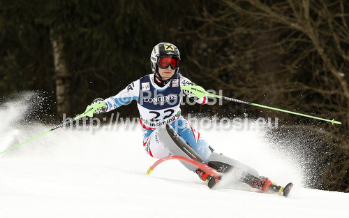 : Kathrin Zettel of Austria skiing during Downhill Super combined race of Fis Alpine World Ski Championships 2013 Schladming, Austria. Downhill Super combined race of Fis Alpine World Ski Championships 2013 Schladming, was held on Friday, 8th of February, 2013, on course Streicher in Schladming, Austria.