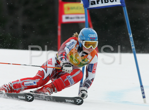 Maribor ,Slovenia - 12.01.2008 : Fifth placed Tanja Poutiainen of Finland skiing in second run of women giant slalom World Cup race in Maribor, Slovenia. Giant slalom race of 44th Golden Fox trophy and Women FIS Alpine skiing World Cup was held in Maribor, Slovenia, on 12th of January 2008. Photo by: Mitja Smid Bricelj