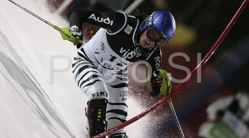 : Monika Bergmann of Germany skiing in second run of women slalom World Cup race in Zagreb, Croatia. Slalom race of Snow Queen Trophy 2008 and Women FIS Alpine skiing World Cup was held in Zagreb, Croatia, on 15th of February 2008.