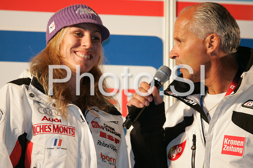 : Ingrid Jacquemod of France during bib draw for first run of Women giant slalom Audi FIS Ski World Cup 2008-09 opening race. Bib draw for first race of Women Audi FIS Ski World Cup season 2008-09 was held on Friday, 24th of October 2008 in Soelden, Austria.