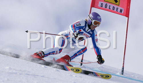 : Ingrid Jacquemod of France skiing during first run of Women giant slalom Audi FIS Ski World Cup 2008-09 opening race. First race of Women Audi FIS Ski World Cup season 2008-09 was held on Saturday, 25th of October 2008 in Soelden, Austria.