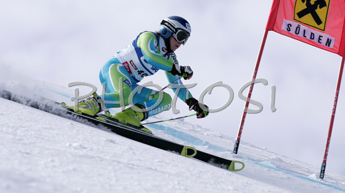 : Marusa Ferk of Slovenia skiing during first run of Women giant slalom Audi FIS Ski World Cup 2008-09 opening race. First race of Women Audi FIS Ski World Cup season 2008-09 was held on Saturday, 25th of October 2008 in Soelden, Austria.