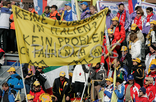 : Italian spectators during first race of Women Audi FIS Ski World Cup season 2008-09 which was held on Saturday, 25th of October 2008 in Soelden, Austria.