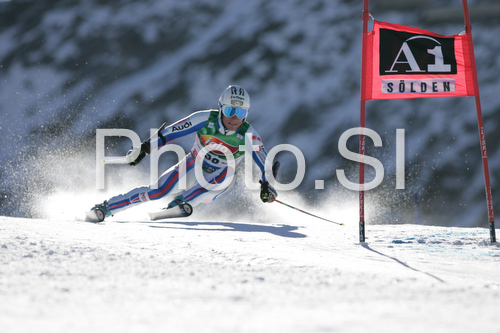 : Julien Lizeroux of France skiing during first run of Men giant slalom Audi FIS Ski World Cup 2008-09 opening race. First race of Men Audi FIS Ski World Cup season 2008-09 was held on Sunday, 26th of October 2008 in Soelden, Austria.