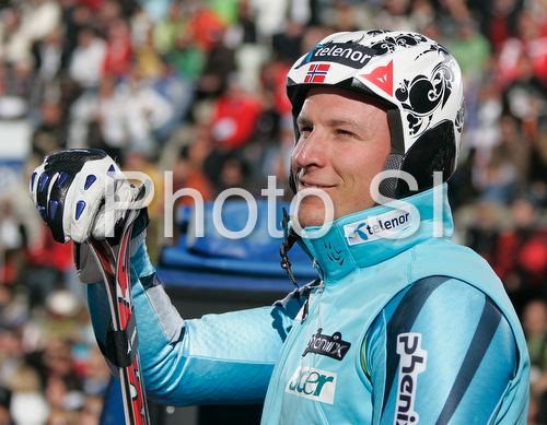 : Aksel Lund Svindal of Norway in finish of second run of Men giant slalom Audi FIS Ski World Cup 2008-09 opening race. First race of Men Audi FIS Ski World Cup season 2008-09 was held on Sunday, 26th of October 2008 in Soelden, Austria.