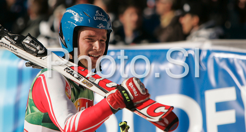 : Fourth placed Benjamin Raich of Austria reacts in finish of second run of Men giant slalom Audi FIS Ski World Cup 2008-09 opening race. First race of Men Audi FIS Ski World Cup season 2008-09 was held on Sunday, 26th of October 2008 in Soelden, Austria.