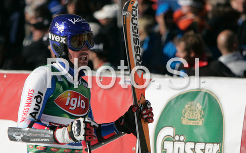 Soelden ,Austria - 26.10.2008 : Jean-Baptiste Grange of France reacts in finish of second run of Men giant slalom Audi FIS Ski World Cup 2008-09 opening race. First race of Men Audi FIS Ski World Cup season 2008-09 was held on Sunday, 26th of October 2008 in Soelden, Austria. Photo by: Primoz Jeroncic