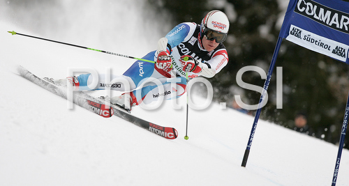 : Second after first run Daniel Albrecht of Switzerland skiing in first run of Alta Badia Men giant slalom race of Audi FIS Ski World Cup 2008-09. Giant slalom race of Men Audi FIS Ski World Cup 2008-09 was traditionally held on Gran Risa course in Alta Badia, Italy, on Sunday, 21st of December 2008.