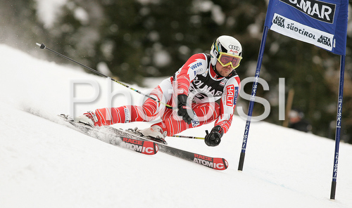 : Jukka Leino of Finland skiing in first run of Alta Badia Men giant slalom race of Audi FIS Ski World Cup 2008-09. Giant slalom race of Men Audi FIS Ski World Cup 2008-09 was traditionally held on Gran Risa course in Alta Badia, Italy, on Sunday, 21st of December 2008.