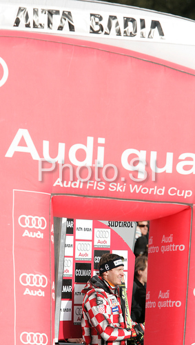 : Second placed Ivica Kostelic of Croatia in finish of second run of Alta Badia Men giant slalom race of Audi FIS Ski World Cup 2008-09. Giant slalom race of Men Audi FIS Ski World Cup 2008-09 was traditionally held on Gran Risa course in Alta Badia, Italy, on Sunday, 21st of December 2008.