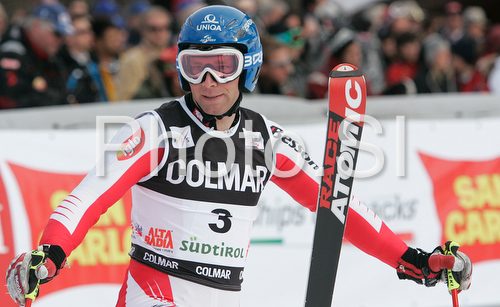 : Benjamin Raich of Austria reacts in finish of second run of Alta Badia Men giant slalom race of Audi FIS Ski World Cup 2008-09. Giant slalom race of Men Audi FIS Ski World Cup 2008-09 was traditionally held on Gran Risa course in Alta Badia, Italy, on Sunday, 21st of December 2008.