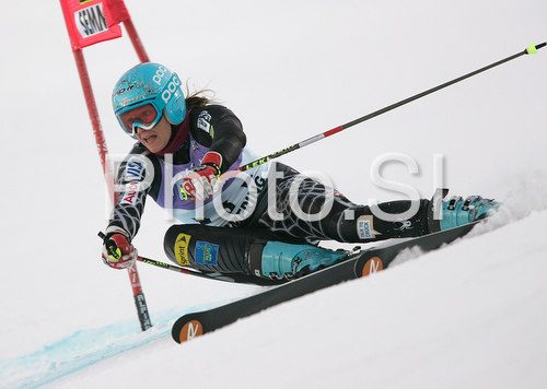 : Eight after first run, Julia Mancuso of USA skiing in first run of Semmering women giant slalom race of Audi FIS Ski World Cup 2008-09. Giant slalom race of Women Audi FIS Ski World Cup 2008-09 was held Semmering, Austria, on Sunday, 28th of December 2008.