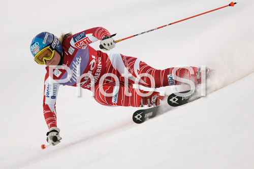 : Tanja Poutiainen of Finland skiing in first run of Semmering women giant slalom race of Audi FIS Ski World Cup 2008-09. Giant slalom race of Women Audi FIS Ski World Cup 2008-09 was held Semmering, Austria, on Sunday, 28th of December 2008.