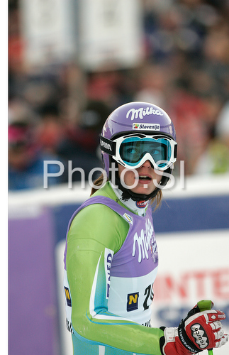 Semmering ,Austria - 28.12.2008 : Tina Maze of Slovenia reacts in finish of second run of Semmering women giant slalom race of Audi FIS Ski World Cup 2008-09. Giant slalom race of Women Audi FIS Ski World Cup 2008-09 was held Semmering, Austria, on Sunday, 28th of December 2008. Photo by: Primoz Jeroncic