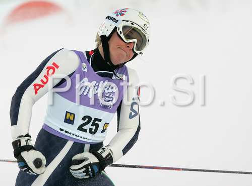 : Camilla Alfieri of Italy reacts in finish of second run of Semmering women giant slalom race of Audi FIS Ski World Cup 2008-09. Giant slalom race of Women Audi FIS Ski World Cup 2008-09 was held Semmering, Austria, on Sunday, 28th of December 2008.
