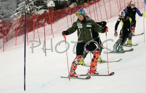 : Tanja Poutiainen of Finland during course inspection before first run of Semmering women slalom race of Audi FIS Ski World Cup 2008-09. Slalom race of Women Audi FIS Ski World Cup 2008-09 was held Semmering, Austria, on Monday, 29th of December 2008.
