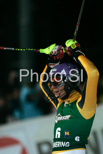 : Winner Maria Riesch of Germany reacts in finish of second run of Semmering women slalom race of Audi FIS Ski World Cup 2008-09. Slalom race of Women Audi FIS Ski World Cup 2008-09 was held Semmering, Austria, on Monday, 29th of December 2008.