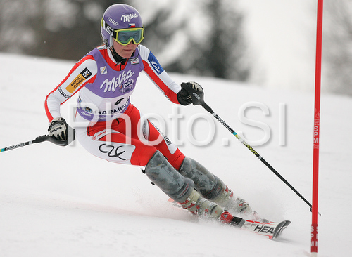 : Fifth placed after first run Sarka Zahrobska of Czech skiing in first run of Women slalom race of Garmisch-Partenkirchen Audi FIS Ski World Cup 2008-09. Garmisch-Partenkirchen slalom Women Audi FIS Ski World Cup 2008-09 was held in Garmisch-Partenkirchen on Friday, 30th of January 2009.