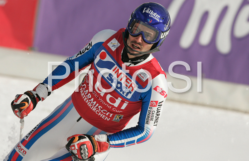 : Fourth placed Jean-Baptiste Grange of France reacts in finish of second run of Men slalom race of Garmisch-Partenkirchen Audi FIS Ski World Cup 2008-09. Garmisch-Partenkirchen slalom Men Audi FIS Ski World Cup 2008-09 was held in Garmisch-Partenkirchen on Sunday, 1st of February 2009.