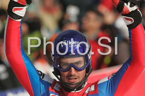 : Fourth placed Jean-Baptiste Grange of France reacts in finish of second run of Men slalom race of Garmisch-Partenkirchen Audi FIS Ski World Cup 2008-09. Garmisch-Partenkirchen slalom Men Audi FIS Ski World Cup 2008-09 was held in Garmisch-Partenkirchen on Sunday, 1st of February 2009.