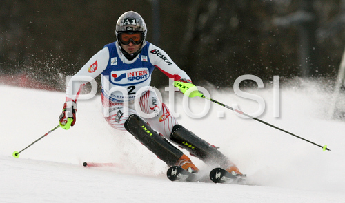 : Reinfried Herbst of Austria skiing in first run of Men slalom race of Garmisch-Partenkirchen Audi FIS Ski World Cup 2008-09. Garmisch-Partenkirchen slalom Men Audi FIS Ski World Cup 2008-09 was held in Garmisch-Partenkirchen on Sunday, 1st of February 2009.