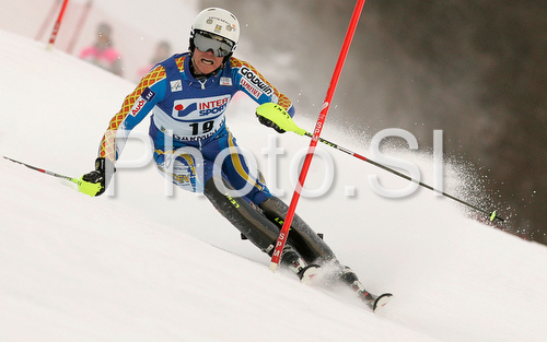 : Mattias Hargin of Sweden skiing in first run of Men slalom race of Garmisch-Partenkirchen Audi FIS Ski World Cup 2008-09. Garmisch-Partenkirchen slalom Men Audi FIS Ski World Cup 2008-09 was held in Garmisch-Partenkirchen on Sunday, 1st of February 2009.
