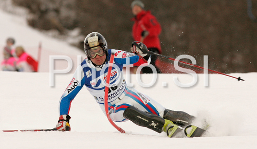 : Alexandre Anselmet of France skiing in first run of Men slalom race of Garmisch-Partenkirchen Audi FIS Ski World Cup 2008-09. Garmisch-Partenkirchen slalom Men Audi FIS Ski World Cup 2008-09 was held in Garmisch-Partenkirchen on Sunday, 1st of February 2009.