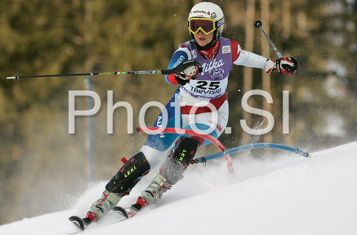 : Fourth placed Rabea Grand of Switzerland skiing in slalom part of Women Super combined race of Tarvisio Audi FIS Ski World Cup 2008-09. Super combined race of Women Audi FIS Ski World Cup 2008-09 was held in Tarvisio, Italy on Friday, 20th of February 2009.