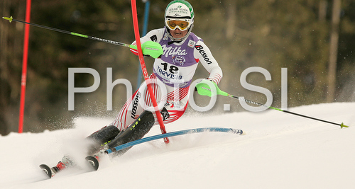 : Eight placed Elisabeth Goergl of Austria skiing in slalom part of Women Super combined race of Tarvisio Audi FIS Ski World Cup 2008-09. Super combined race of Women Audi FIS Ski World Cup 2008-09 was held in Tarvisio, Italy on Friday, 20th of February 2009.