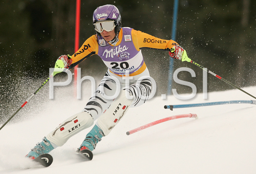 : Winner Maria Riesch of Germany skiing in slalom part of Women Super combined race of Tarvisio Audi FIS Ski World Cup 2008-09. Super combined race of Women Audi FIS Ski World Cup 2008-09 was held in Tarvisio, Italy on Friday, 20th of February 2009.