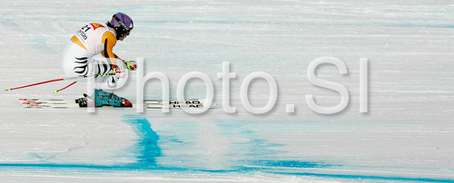: Tenth placed Maria Riesch of Germany skiing in Women Downhill race of Tarvisio Audi FIS Ski World Cup 2008-09. Downhill race of Women Audi FIS Ski World Cup 2008-09 was held in Tarvisio, Italy on Saturdayday, 21st of February 2009.