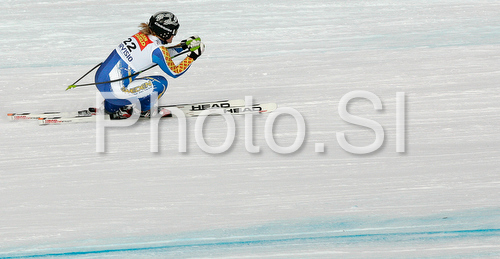 : Third placed Anja Paerson of Sweden skiing in Women Downhill race of Tarvisio Audi FIS Ski World Cup 2008-09. Downhill race of Women Audi FIS Ski World Cup 2008-09 was held in Tarvisio, Italy on Saturdayday, 21st of February 2009.