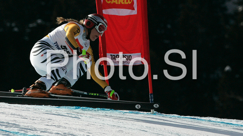 : Isabelle Stiepel of Germany skiing in Women Downhill race of Tarvisio Audi FIS Ski World Cup 2008-09. Downhill race of Women Audi FIS Ski World Cup 2008-09 was held in Tarvisio, Italy on Saturdayday, 21st of February 2009.