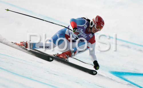 : Sixth placed Nadja Kamer of Switzerland skiing in Women Super-G race of Tarvisio Audi FIS Ski World Cup 2008-09. Downhill race of Women Audi FIS Ski World Cup 2008-09 was held in Tarvisio, Italy on Sunday, 22nd of February 2009.