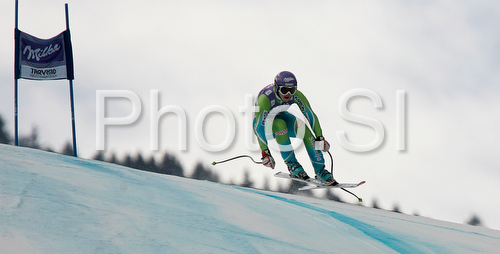 : Third placed Tina Maze of Slovenia skiing in Women Super-G race of Tarvisio Audi FIS Ski World Cup 2008-09. Downhill race of Women Audi FIS Ski World Cup 2008-09 was held in Tarvisio, Italy on Sunday, 22nd of February 2009.