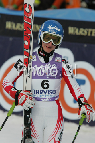 : Fourth placed Kathrin Zettel of Austria reacts in finish of Women Super-G race of Tarvisio Audi FIS Ski World Cup 2008-09. Downhill race of Women Audi FIS Ski World Cup 2008-09 was held in Tarvisio, Italy on Sunday, 22nd of February 2009.