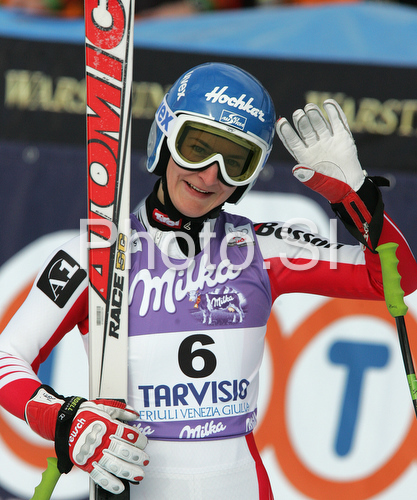 : Fourth placed Kathrin Zettel of Austria reacts in finish of Women Super-G race of Tarvisio Audi FIS Ski World Cup 2008-09. Downhill race of Women Audi FIS Ski World Cup 2008-09 was held in Tarvisio, Italy on Sunday, 22nd of February 2009.