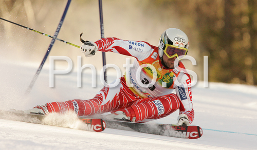 : Jukka Leino of Finland skiing in first run of Men giant slalom race of Kranjska Gora Audi FIS Ski World Cup 2008-09. Giant slalom race of Men Audi FIS Ski World Cup 2008-09 was held in Kranjska Gora, Slovenia, on Saturday, 28th of February 2009.