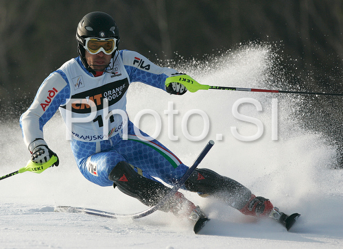 Kranjska Gora ,Slovenia - 01.03.2009 : Giorgio Rocca of Italy skiing in first run of Men slalom race of Kranjska Gora Audi FIS Ski World Cup 2008-09. Slalom race of Men Audi FIS Ski World Cup 2008-09 was held in Kranjska Gora, Slovenia, on Sunday, 1st of February 2009. Photo by: Primoz Jeroncic
