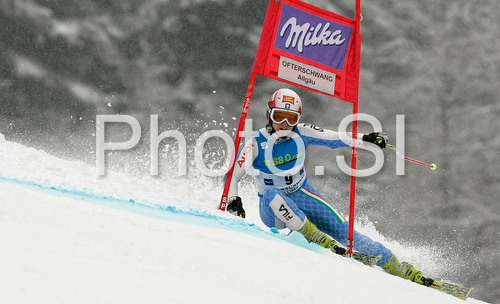 : Nicole Gius of Italy skiing in first run of Women giant slalom race of Ofterschwang Audi FIS Ski World Cup 2008-09. Giant slalom race of Women Audi FIS Ski World Cup 2008-09 was held in Ofterschwang, Germany, on Friday, 6th of March 2009.