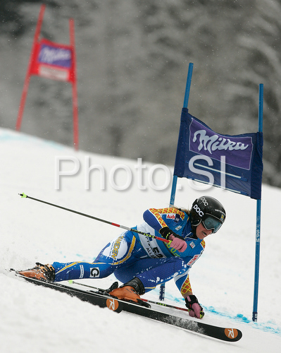 : Frida Hansdotter of Sweden skiing in first run of Women giant slalom race of Ofterschwang Audi FIS Ski World Cup 2008-09. Giant slalom race of Women Audi FIS Ski World Cup 2008-09 was held in Ofterschwang, Germany, on Friday, 6th of March 2009.