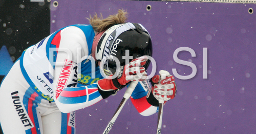Ofterschwang ,Germany - 06.03.2009 : Tessa Worley of France reacts in finish of second run of Women giant slalom race of Ofterschwang Audi FIS Ski World Cup 2008-09. Giant slalom race of Women Audi FIS Ski World Cup 2008-09 was held in Ofterschwang, Germany, on Friday, 6th of March 2009. Photo by: Primoz Jeroncic