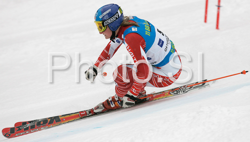 : Third placed Tanja Poutiainen of Finland skiing in second run of Women giant slalom race of Ofterschwang Audi FIS Ski World Cup 2008-09. Giant slalom race of Women Audi FIS Ski World Cup 2008-09 was held in Ofterschwang, Germany, on Friday, 6th of March 2009.