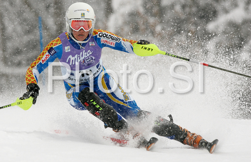 : Frida Hansdotter of Sweden skiing in first run of Women slalom race of Ofterschwang Audi FIS Ski World Cup 2008-09. Slalom race of Women Audi FIS Ski World Cup 2008-09 was held in Ofterschwang, Germany, on Saturday, 7th of March 2009.